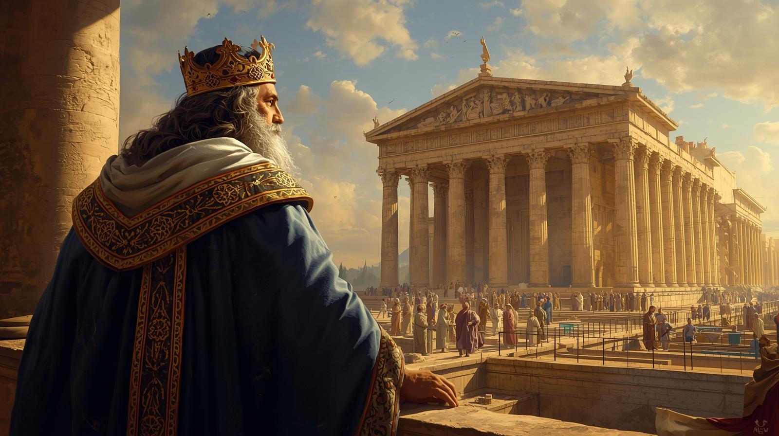 - Narasi Alkitab: Salomo menggunakan masa damai dan kemakmuran untuk membangun Bait Suci, sebuah proyek besar yang memuliakan Tuhan. Ia mengorganisir sumber daya dan tenaga kerja dengan luar biasa.